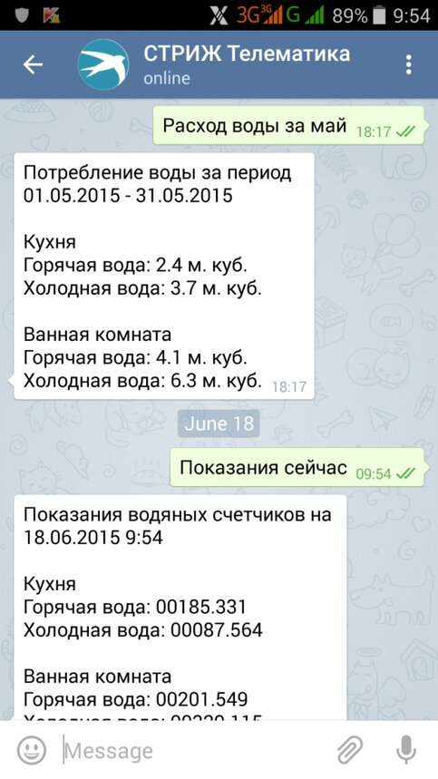 "Перед нами стояла задача дать пользователям простой способ получения показаний водяных счетчиков с мобильного телефона. Разрабатывать отдельное приложение для мобильных устройств затратно и долго. Мы пошли по простому пути - использовали API Telegram. Пользователю не нужно привыкать к новому интерфейсу, он может выполнить запрос в знакомом ему мессенджере простым языком", - отметил технический директор "СтрижТелематика" Евгений Ахмадишин.
