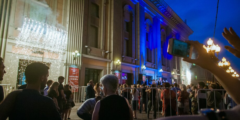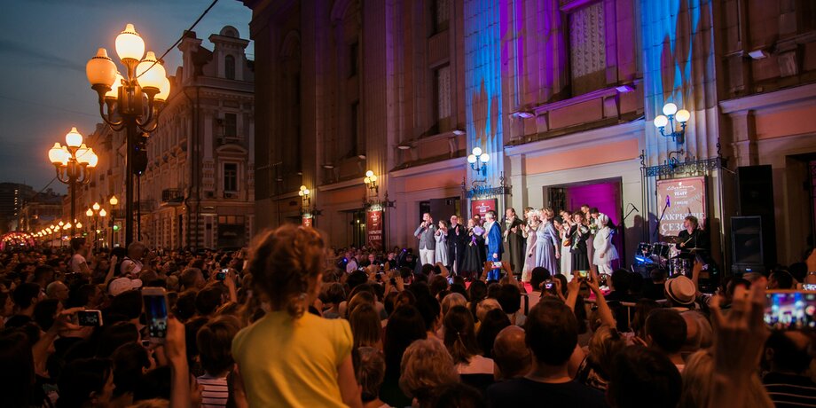 3 июля, на импровизированной сцене у центрального входа в Театр имени Вахтангова на Арбате состоялось праздничное закрытие сезона. Об этом сообщает официальный сайт театра.