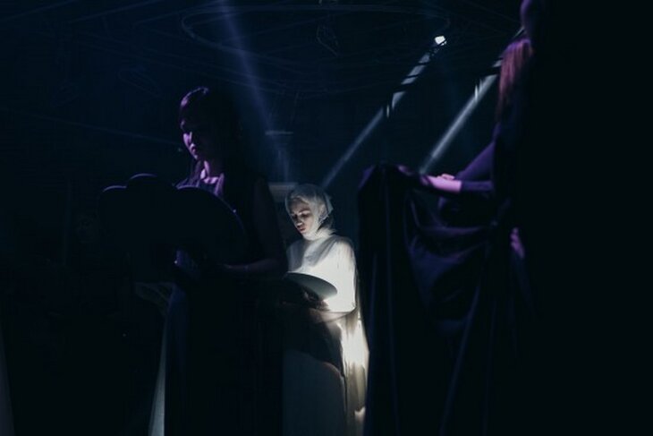16 моделей, шесть музыкантов, четыре экрана, три камеры, два голоса и одна античная драма