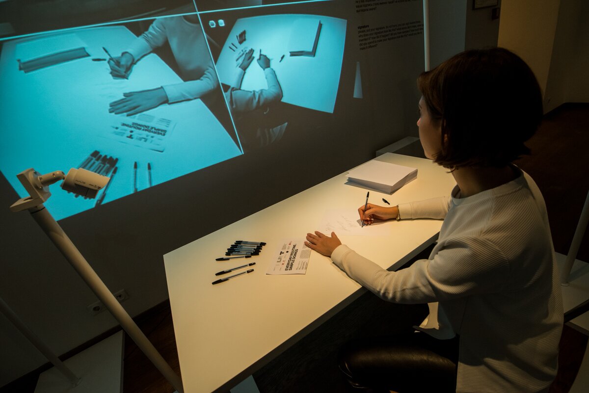 Второй зал посвящен конкретным действием – мытью рук, завариванию чая, вводу пин-кода и подписи бумаг. Вы когда-нибудь задумывались о том, сколько раз в день вы повторяете эти действия?