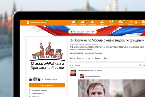 Гулять в Москве можно не только реально, но и виртуально. В этом пользователям ОК помогает известный блогер Александр Усольцев, который проводит онлайн-экскурсии по столице. При этом Александр транслирует не только свои прогулки, но и проводит онлайн-лекции о различных уголках Москвы и их истории.