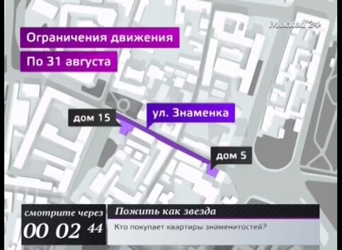 Движение по улице Знаменка с 30 июля ограничено из-за ремонтных работ, сообщил в среду телеканал "Москва 24".