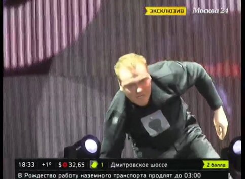 Праздничное шоу "Телепорт" по традиции было наполнено сложными и опасными номерами. Во время исполнения трюка "Освобождение из смирительной рубашки" Сергей Сафронов неудачно спрыгнул и сломал левую руку.