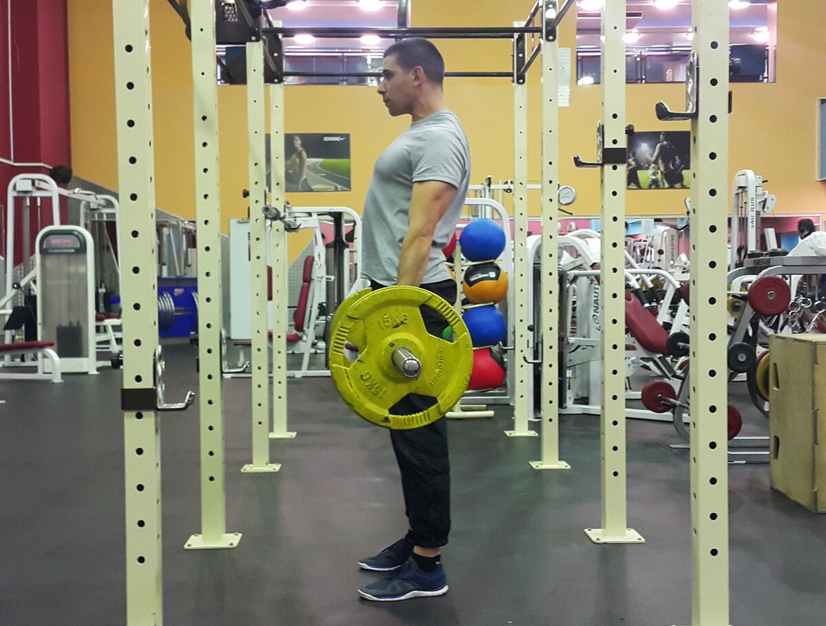 - Крепко возьмитесь за гриф чуть шире ширины плеч.