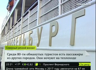 Двухпалубный теплоход должен был 12 дней путешествовать по России - через Санкт-Петербург, Валаам, Соловки и обратно. Многие туристы приехали в столицу из других городов и теперь вынуждены ожидать на борту теплохода. В среднем путевка обошлась людям в 60 тысяч рублей.