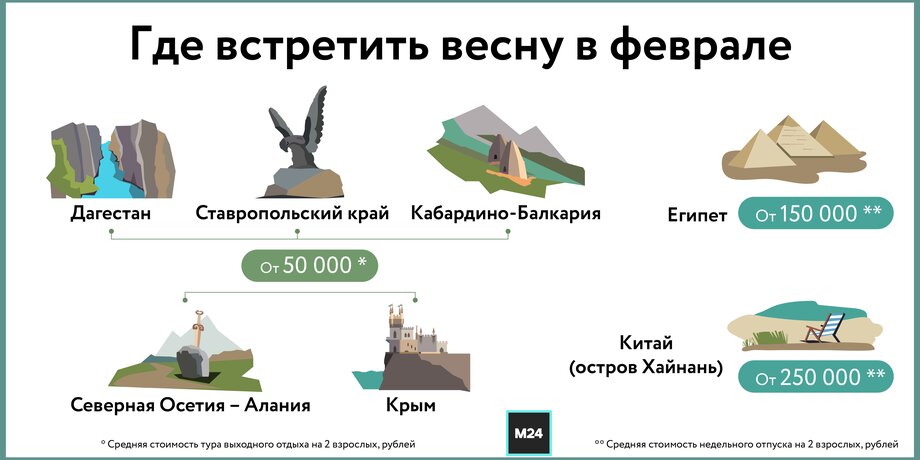 "На фоне крепкого курса рубля и доступности передвижения объем предложений сегодня достаточно большой. В конце февраля – начале марта можно выбрать такие страны, как Египет и Китай, в частности остров Хайнань", – порекомендовал эксперт.
