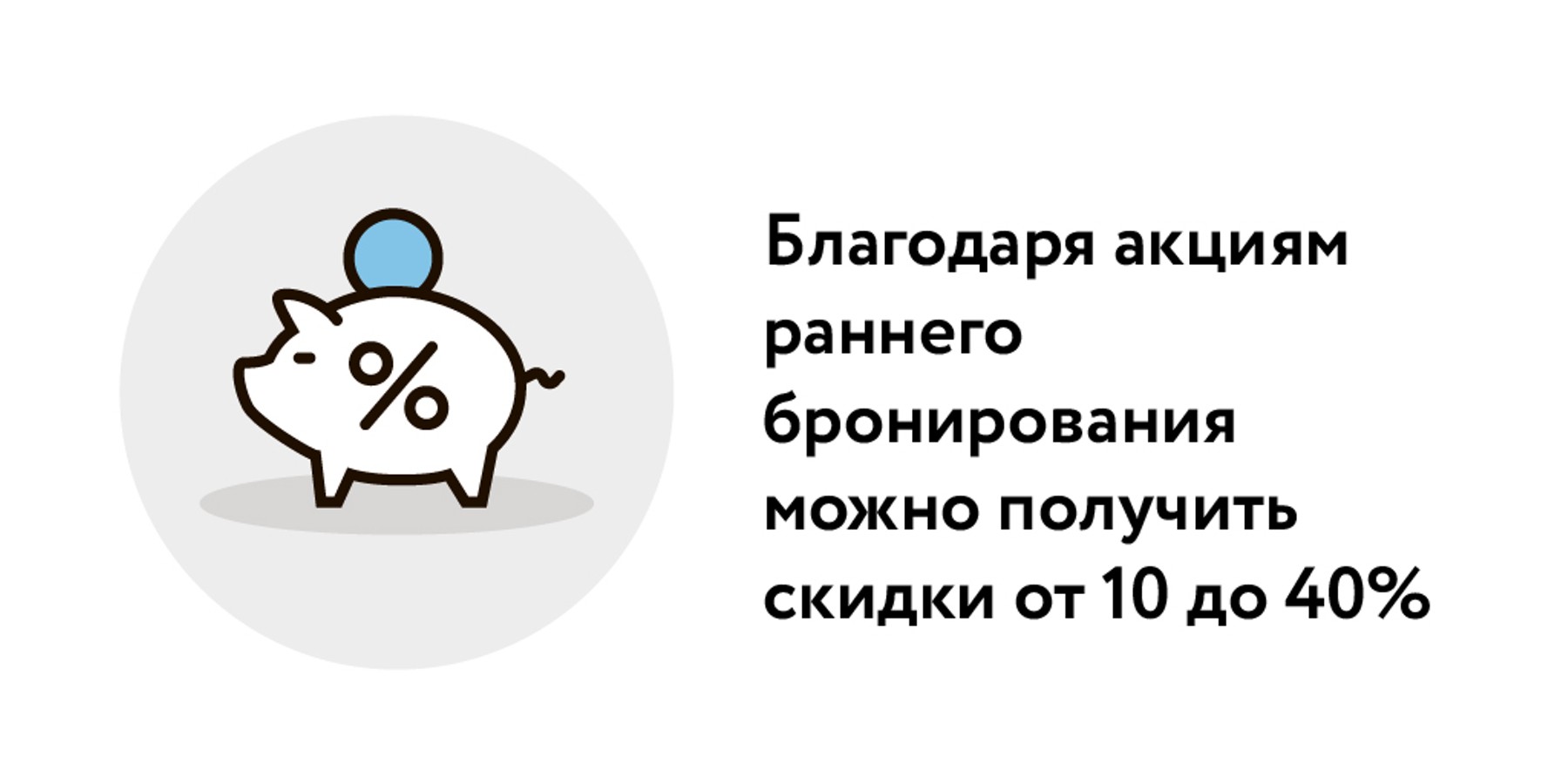 Заблаговременная покупка тура также поможет сберечь деньги. Сейчас и в России, и за рубежом действуют акции раннего бронирования, в рамках которых можно получить скидки от 10 до 40%, напомнил Горин.