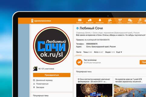 Многие пользователи Одноклассников предпочитают отдыхать на российских побережьях – в любимом с детства Сочи. Группа в ОК "Любимый Сочи" ведет хроники города и публикует анонсы мероприятий на любой вкус. До 6 августа в Сочи проходит форум "Наноград" для детей, в это же время пройдет фестиваль "Акваджаз". Собираетесь ехать в Сочи – вступайте в группу и следите за анонсами.