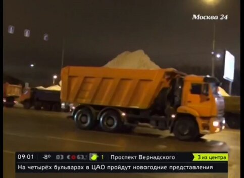Один самосвал в среднем перевозит 17 кубометров снега. Всего за зиму уничтожается около 5 миллионов кубометров.