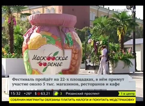 - Пушкинская площадь – "Фруктовый стадион" (эстафета, прыжки в длину, баскетбол, метание дротиков, теннис, соревнования по поеданию варенья, мастер-классы спортсменов);