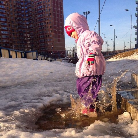 Для детей приход весны – всегда праздник. Ведь это так увлекательно – шлепать по лужам! И неважно, что за это могут отругать, яркие впечатления сильнее любого страха перед родительским внушением.