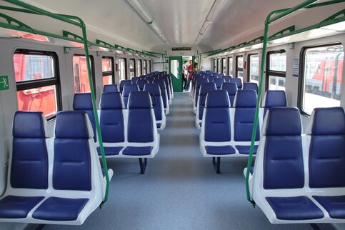 Новые электрички станут более комфортабельными, безопасными и экономными. Салоны оборудованы новыми диванами, багажными полками, информационными табло и климатической системой воздуходувов, с помощью которой воздух будет обеззараживаться. Уровень шума и вибрации в салоне будет значительно ниже благодаря мощному статическому преобразователю.
