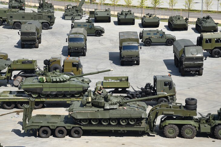 В военную технику записали основные боевые танки (в России это – Т-90СМ, Т-80У и Т-72Б3), легкие танки, бронетранспортеры, артиллерию и системы залпового огня.