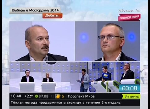 Ведущий: Здравствуйте. В прямом эфире телеканала "Москва 24" дебаты кандидатов в депутаты Московской городской Думы. Я напомню, что выборы состоятся 14 сентября. Эфирное время предоставлено по инициативе столичных властей, чтобы сделать выборы максимально открытыми. Участие в дебатах добровольное.