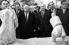 Особый вклад в искусство, точнее в его критику, внес и Никита Хрущев, которому, кстати, СССР обязан так называемой "оттепелью" после смерти Сталина - появлением некоторой свободы слова, относительной демократизацией общественной жизни, открытостью западному миру, большей свободой творческой деятельности.