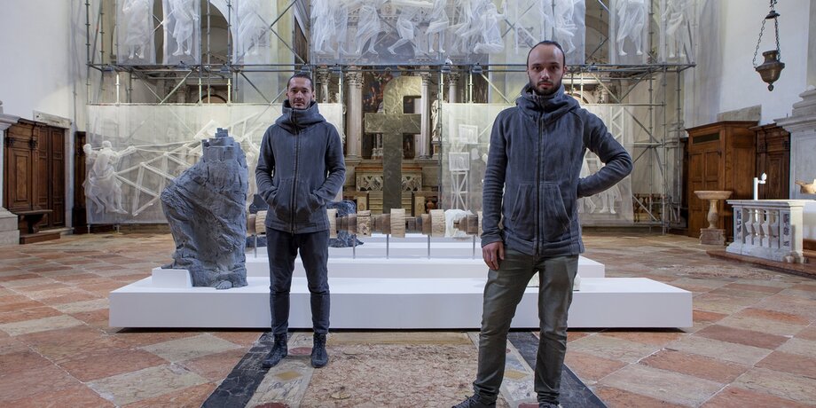 – Блохин: Это была большая инсталляция, которая была представлена в церкви Сан-Антонин. За полгода его посмотрело 137 тысяч человек, что для Венеции очень высокий показатель. По сути, мы давно хотели сделать выставку в рамках биеннале, и в прошлом году нам это удалось. Изначально это проект планировался для "Манежа", но выставка перенеслась. И мы подумали: почему бы нам не подать заявку на участие в биеннале? Нам помог Василий Церетели, потом подключились французские партнеры La Fabrique Barbot et Fournier, которые дали финансирование, и галерея Триумф. Мы нашли площадку и познакомились с кардиналом Доном Капуто. Идея проекта ему понравилась, и он сказал "Все классно! И "фэйсбук" давайте поставим в алтаре".