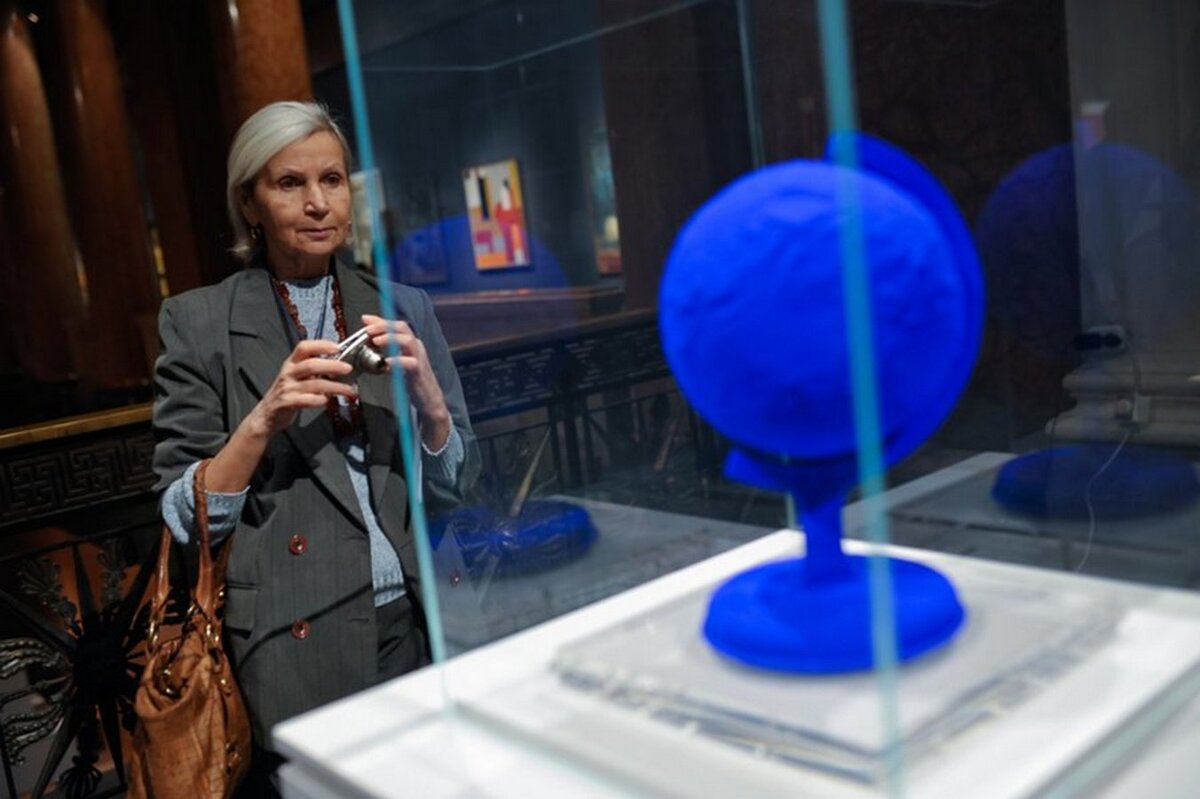 В экспозиции "Синий Кляйна" создает прекрасную параллель с "Красным Рогинского". Нет, на самом деле такого цвета, конечно, нет, а идеи у советского художника были прямо противоположные. Михаил Рогинский был художником соц-арта, в интересах которого было создание художественной мифологии советского быта. Парадокс заключается в том, что, обращаясь к примитивнейшим бытовым мотивам – плитке, розеткам, чайникам и прочей кухонной утвари, – Рогинский достиг такой же поэтической абстракции, как у Кляйна, который изначально работал исключительно с цветом как главным материалом и источником образов.