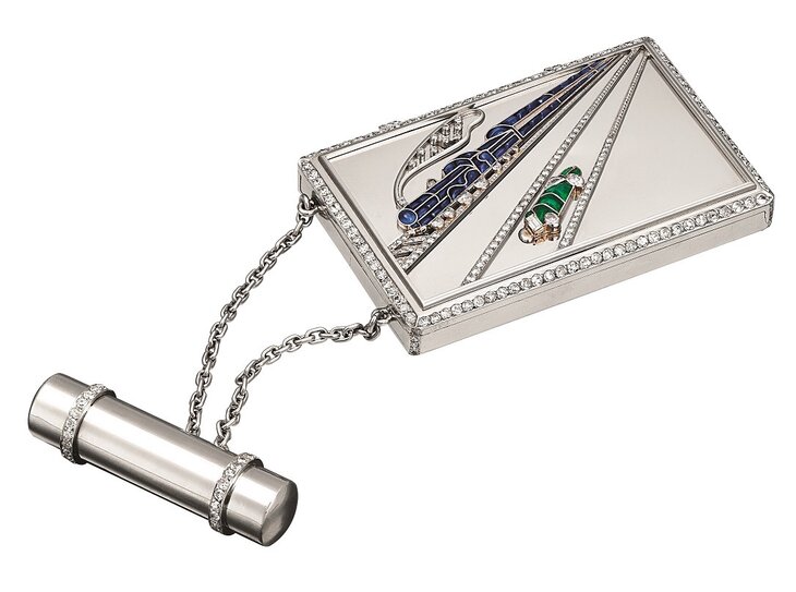 Несессеры, мундштуки, портсигары, пепельницы, как и дамские каблуки, могли стать драгоценностями. Их выполняли из цельных полудрагоценных пород, покрывали лаками или эмалью, украшали изумрудами, сапфирами и бриллиантами, ограняли платиной. Восточные, китайские или японские мотивы также были в духе моды на экзотику, поэтому ювелиры и дизайнеры использовали изображения с гравюр, которые стали в огромном количестве продаваться в Европе.