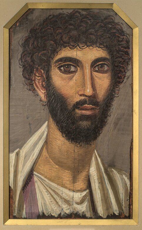 Портрет мужчины с пышной шевелюрой, Египет, Фаюм. Середина II века н. э.