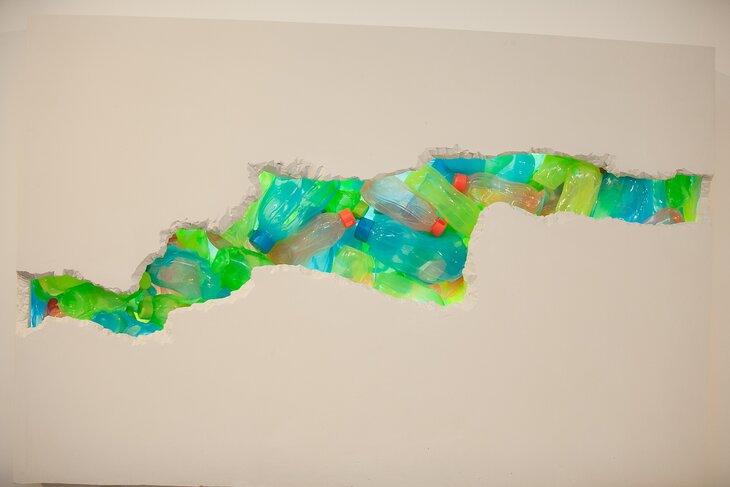 В центре дизайна ARTPLAY открылась выставка арт-группы RECYCLE. Для создания экспозиции в рамках проекта "Археология будущего" мастера использовали посуду из цветных полимеров.