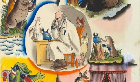 Владимир Конашевич был первым иллюстратором книг К.И. Чуковского и С.Я. Маршака. Ранний период его творчества будет представлен на выставке иллюстрациями к "Мухе-Цокотухе" и "Мойдодыру" К.И.Чуковского. В конце 1940-х – начале 1950-х годов художник сотрудничал со многими современными ему авторами – К.И. Чуковским, С.В. Михалковым, А.Л. Барто. Этим иллюстрациям посвящен отдельный зал выставки. С середины 1950-х годов начался самый яркий период в творчестве художника. В 1956 году он создал иллюстрации к сборнику английских детских стихов в переводе С.Я. Маршака "Плывет, плывет кораблик", "Золушке" Ш. Перро, книгам "Чудо-дерево" К.И. Чуковского и "Приходи, сказка!" В.И. Даля. Сборник "Плывет, плывет кораблик" исследователи творчества художника называют главной детской книгой Конашевича, возрождающей традицию книжки-картинки, с которой начиналась в 1920-х годах советская детская книга. На выставке также будут представлены последние работы художника к произведениям А.С. Пушкина – "Сказке о царе Салтане", "Сказке о Золотом петушке" и "Сказке о мертвой царевне".