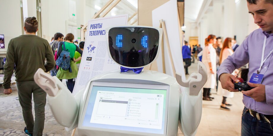 Теспиан – самый человечный робот на выставке. Он смущается, когда благодаришь его за прочитанный стих аплодисментами, меняет выражение лица, определяет настроение собеседника. А еще Теспиан рассказывает истории или просит помочь ему, например, проводить в магазин автозапчастей. "Я слышал, что несмотря на то, что он из Англии, детали от "девятки" мне вполне подойдут", – говорит он. Всего таких роботов в мире 77, два из них находятся в России, и обоих можно увидеть на ВДНХ.