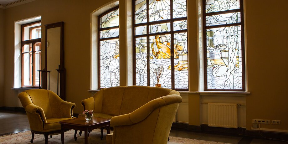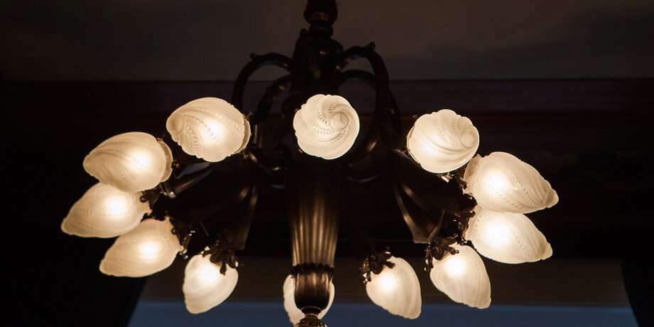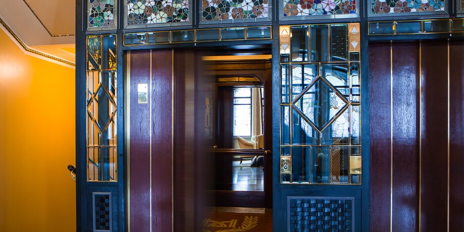 – В описи нашей коллекции антиквариата более 800 предметов, причем самый большой раздел в описи – осветительные приборы, люстры, светильники и т.п. Многие из них сохранились с 1905 года. Оригинальные и витражи на лифте.
