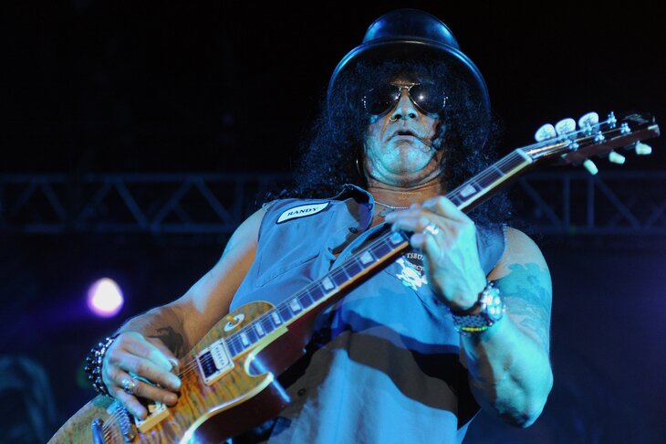 Ансамбль Guns N' Roses как будто бы существует и поныне. Однако с одним зажравшимся в прямом и переносном смыслах вокалистом Акселем Роузом – без нашего героя Слэша, без оригинальных ритм-гитариста Иззи Стрэдлина и басиста Даффа МакКэйгана, без супер-барабанщика Мэтта Сорума – это все не то. Пусть Акселю и аккомпанирует теперь целый отряд отличных молодых музыкантов, но сие больше напоминает зачетную кавер-банду. Другое дело, проекты разных лет с участием нашего именинника: тут вам и супергруппа Velvet Revolver с Даффом и Мэттом да вокалистом Скоттом Вейландом из Stone Temple Pilots, и подработка у Майкла Джэксона в треке и клипе на суперхит последнего Give In To Me, и сольные труды с участием Ферги, Оззи Осборна, Кида Рока, Майлза Кеннеди, и еще одна суперкоманда Kings of Chaos, в состав которой входили или входят такие гранды рока, как все те же экс-участники Guns N' Roses Мэтт и Дафф, Гленн Хьюз (Deep Purple), Билли Гибонс (ZZ Top) и Стивен Тайлер (Aerosmith).