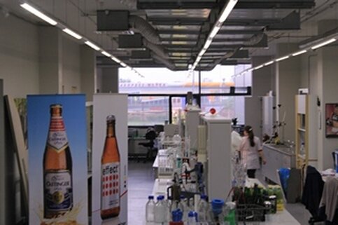 Затем была лаборатория – люди в белых халатах творят над колбами и пробирками, проверяя качество пива.