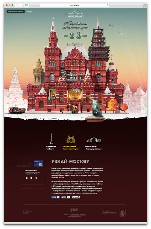 Речь идет об Останкинской башне, Государственном историческом музее и станции метро "Площадь революции". По каждому из них создан промо-сайт, где собраны популярные и малоизвестные факты о достопримечательностях. Вся информация сопровождается иллюстрацией. Интерактивные экскурсии доступны и на английском языке.