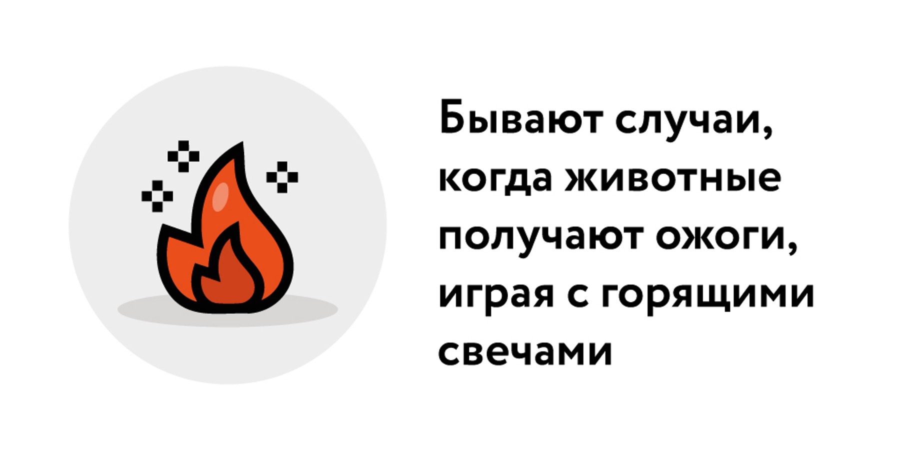 Также бывают случаи, когда животные получают ожоги, например, из-за того, что пытались играть с горящими свечами.
