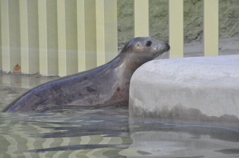 Тюлени очень общительные животные, они быстро нашли контакт с киперами и уже едят рыбу из их рук. Увидеть их можно в бывшем вольере сивуча – напротив Малого пруда на Старой территории.