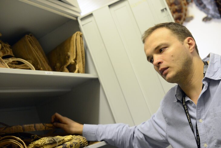 Из других стран экспонаты, как правило, не попадают. Существует международное соглашение, конвенция Ситес, по которой перевозить части животного или самих животных через границу очень сложно. Например, все крокодилы относятся к Ситесу. Недавно я работал над документами для таможни. Они прислали фотографии крокодиловых шкур и просили меня ответить, можно ли их ввозить в нашу страну".