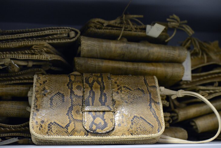 "В моем хранилище есть шкаф, где хранятся сумочки и ремни, полученные от Шереметьевской таможни в 1990-е годы. Большое количество изделий изготовлено из кожи змей или крокодилов. Понятно, что вещи были для продажи, и человек перевозил контрабанду не для себя. На каждый пояс и сумку должен быть сертификат, чтобы было ясно, что животные взяты не из живой природы, а выращены на ферме. В нашем случае никаких документов не было.