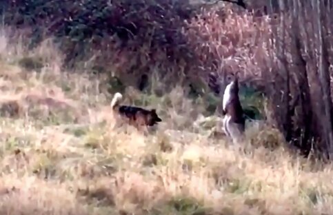 Мужчина рассказал, что заметил животных, когда ехал по трассе в штате Новый Южный Уэльс. На его глазах кенгуру напал на немецкую овчарку, собака лаяла и бросалась на агрессора, однако укусить его не пыталась.