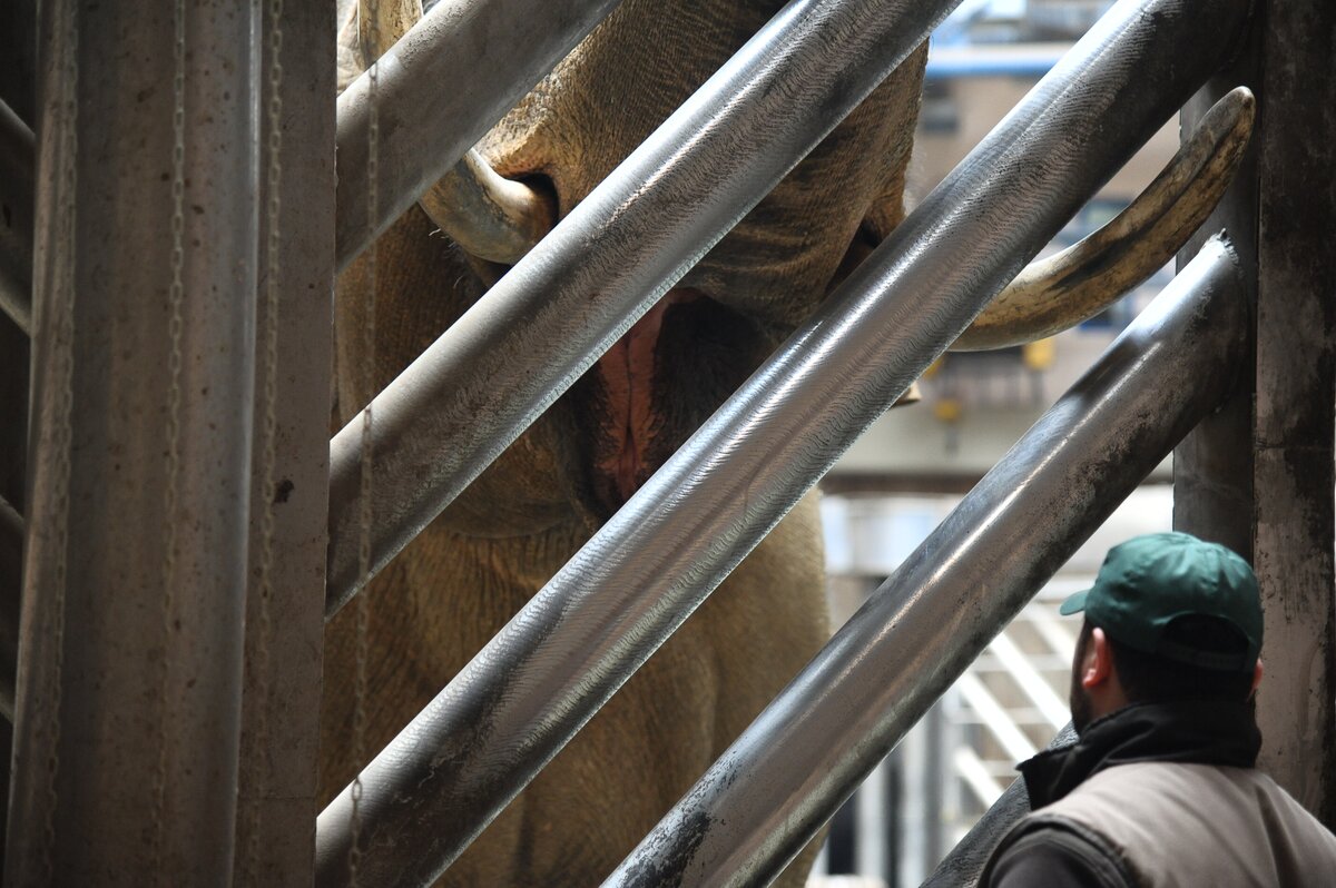 – Да, мы нажимаем на кнопку, дверь открывается, и слон спокойно переходит по коридорчику. И обратно заходит сам. Самка с детенышем делают то же самое. Они уже прекрасно понимают, куда идти.