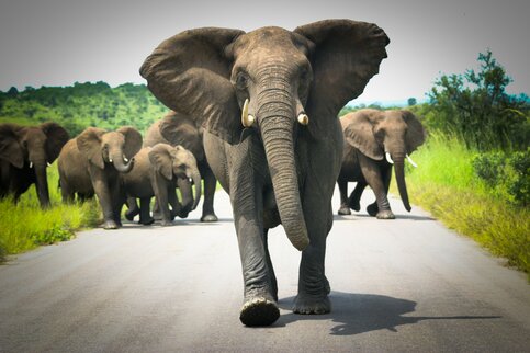 Выбежавший на дорогу огромный слон начал преследовать автомобиль и долгое время не оставлял попыток догнать чужаков. Погоню сняли на видео, которое было опубликовано 21 февраля на YouTube-канале Национального парка Крюгера.