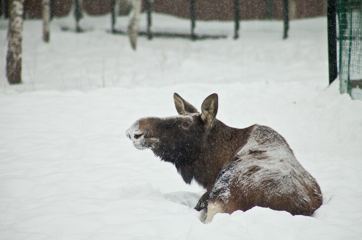 У лосей в природе практически нет врагов, даже волки не будут нападать на взрослого зверя. Но основным средством защиты у него являются вовсе не рога, а ноги: он свободно дерется ими, ломает деревья. Единственное, от чего страдают копытные, – это гельминты, черви-паразиты. А так это практически здоровые животные. Чтобы еще больше укрепить их иммунитет, в весенний период сотрудники выкладывают в кормушки соль-лизунец с витаминами.