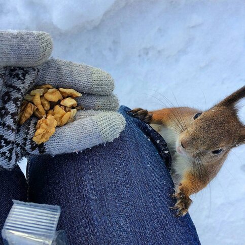 Как рассказал директор "Аптекарского огорода" Алексей Ретеюм, белка поселилась в дупле дерева у главного входа и постоянно пополняет запас орехов, которые приносят ей посетители сада.