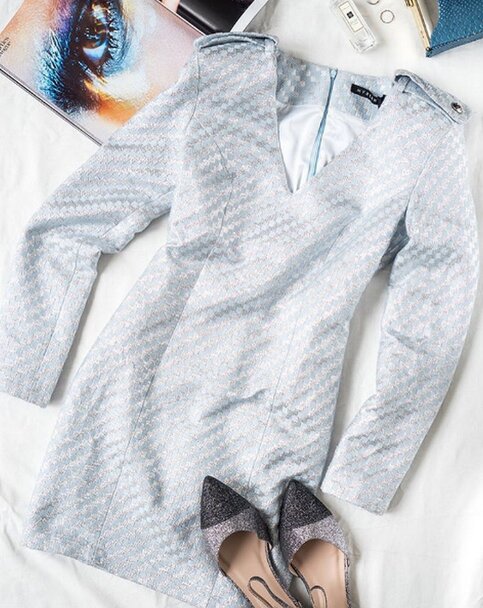 Если хочется праздника уже сейчас, можно облачиться в серебристое платье от Betrendy Wear. Выполнено из парчи и на шелковой подкладке.
