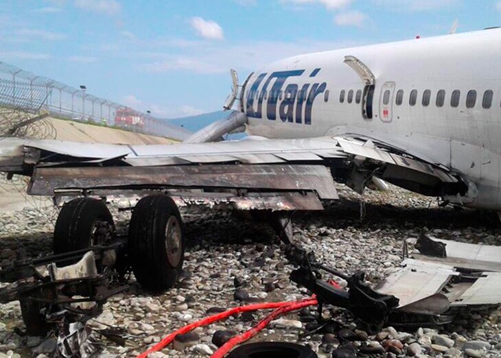 Ночью 1 сентября Boeing-737 выкатился за пределы взлетно-посадочной полосы аэропорта Сочи. Из-за плохих погодных условий пилотам не удалось вовремя остановить самолет: он скатился в русло реки и загорелся. При этом у лайнера оторвались шасси и крыло.