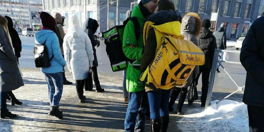 Накануне, 20 февраля, в интернет попала фотография, на которой автор запечатлел объятия и поцелуй молодой пары из Новосибирска. Молодой человек работает в сервисе по доставке еды Delivery club, а девушка в компании "Яндекс.Еда".