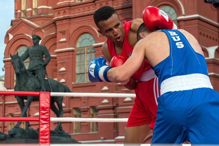 День бокса отметили в центре Москвы. Мероприятие состоялось накануне прямо у стен Кремля, на Манежной площади.