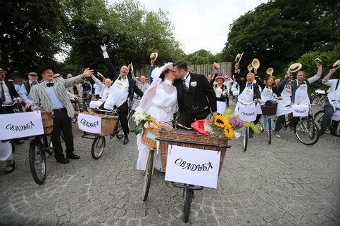 Первая велосвадьба с велопробегом состоится в Москве 27 августа. Основной площадкой для торжества станет парк Победы, где участники проведут флешмоб, в котором из велосипедов выложат свадебные фигуры.