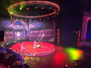 На манеж выходят клоуны разных мастей, акробаты, силачи, жонглеры. Пафос мероприятия сбит окончательно!