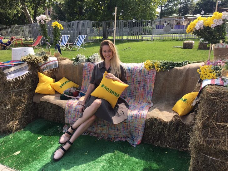 В "Эрмитаже" пахнет, как в деревне. За пасторальную атмосферу в центре Москвы отвечает однофамилец фестиваля "Sолома", декоратор Александр Соломин. Место для фотосессий уже готово.