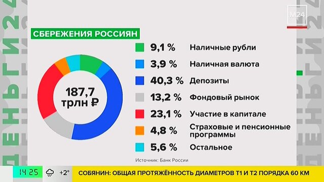 "Деньги 24": россияне накопили 187,7 трлн рублей финансовых активов