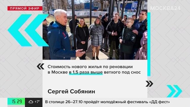 Собянин: стоимость жилья по реновации в 1,5 раза выше ветхого