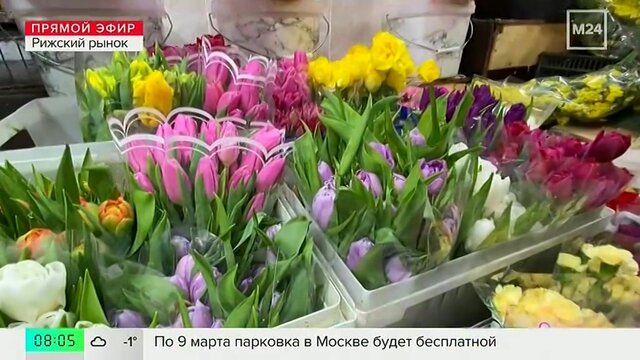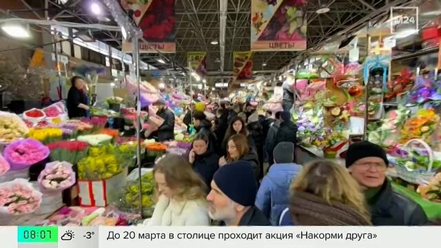 Десятки тысяч москвичей отправились за цветами к 8 Марта на Рижский рынок