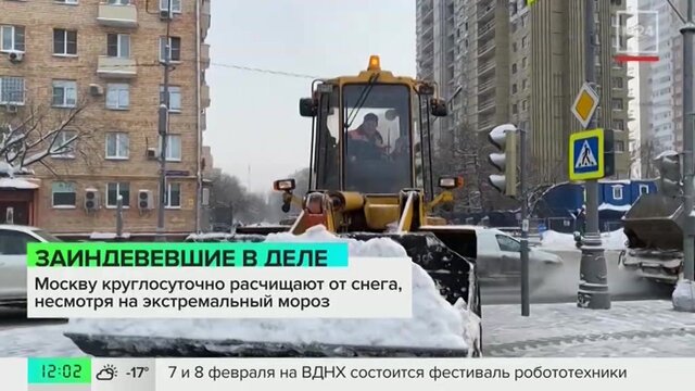 Круглосуточная уборка снега идет в Москве, несмотря на экстремальный мороз